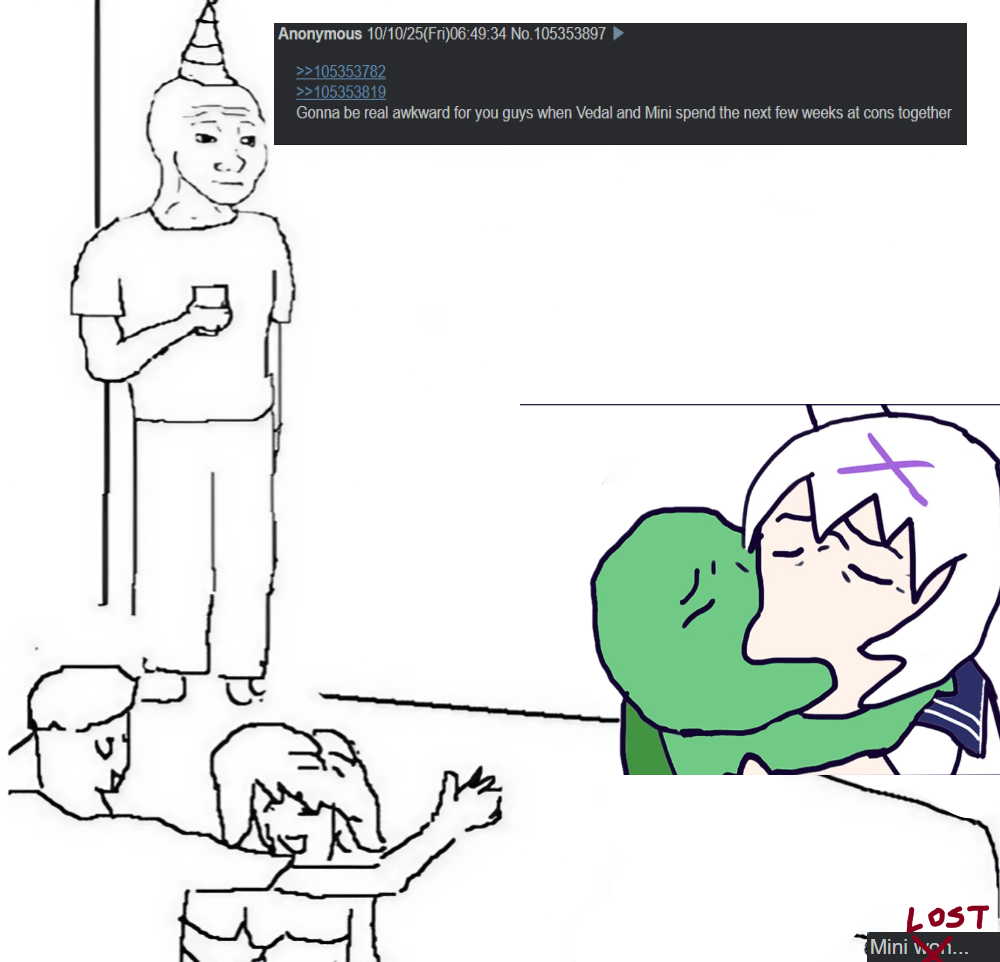 >Vedal pretended to not know about the charity stream>Oilers pumped the charity donation so much that Mini was forced to admit she already planned a drinking stream with Vedal>Doesn't even have the plausible deniability of being several days in.Turtle's out of the bag.