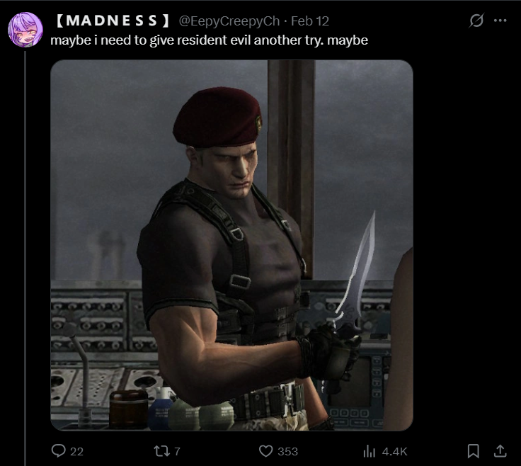 Runie continues RE9https://www.youtube.com/watch?v=ICp6TqMtua4https://www.youtube.com/watch?v=ICp6TqMtua4https://www.youtube.com/watch?v=ICp6TqMtua4https://twitch.tv/runierusehttps://twitch.tv/runierusehttps://twitch.tv/runieruse