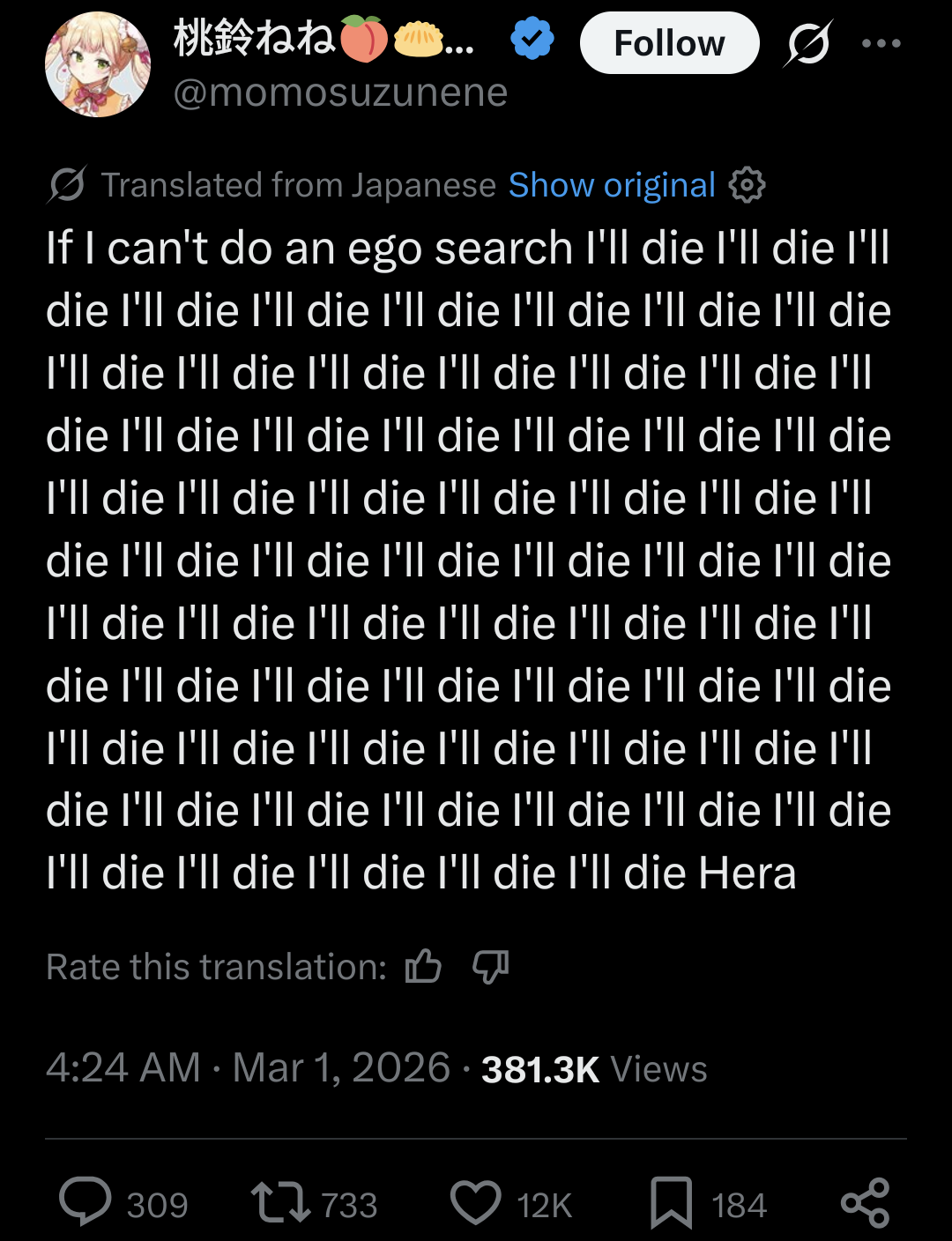 >>109892628No, like Henemimi losing it over Leon dying. Dieing? Diying? Unaliving.
