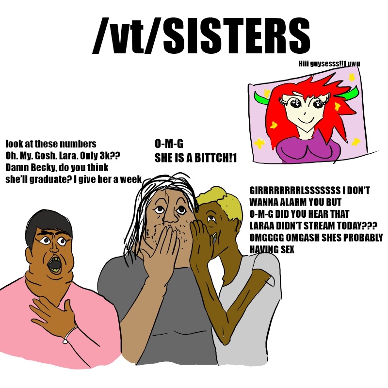 I just realized vtubing like watching highschool girl drama and gossips to each other afterward>omg becky, did you hear what ashley said about jeanie's shoes?>I bet jessica fucked ton of guys