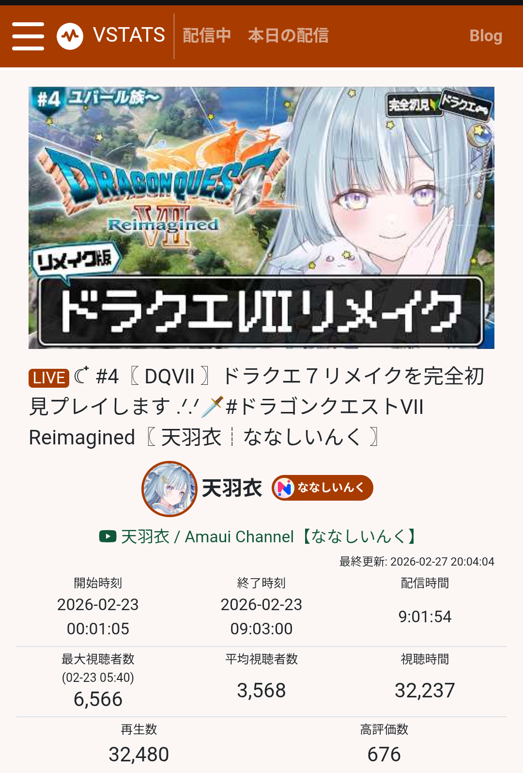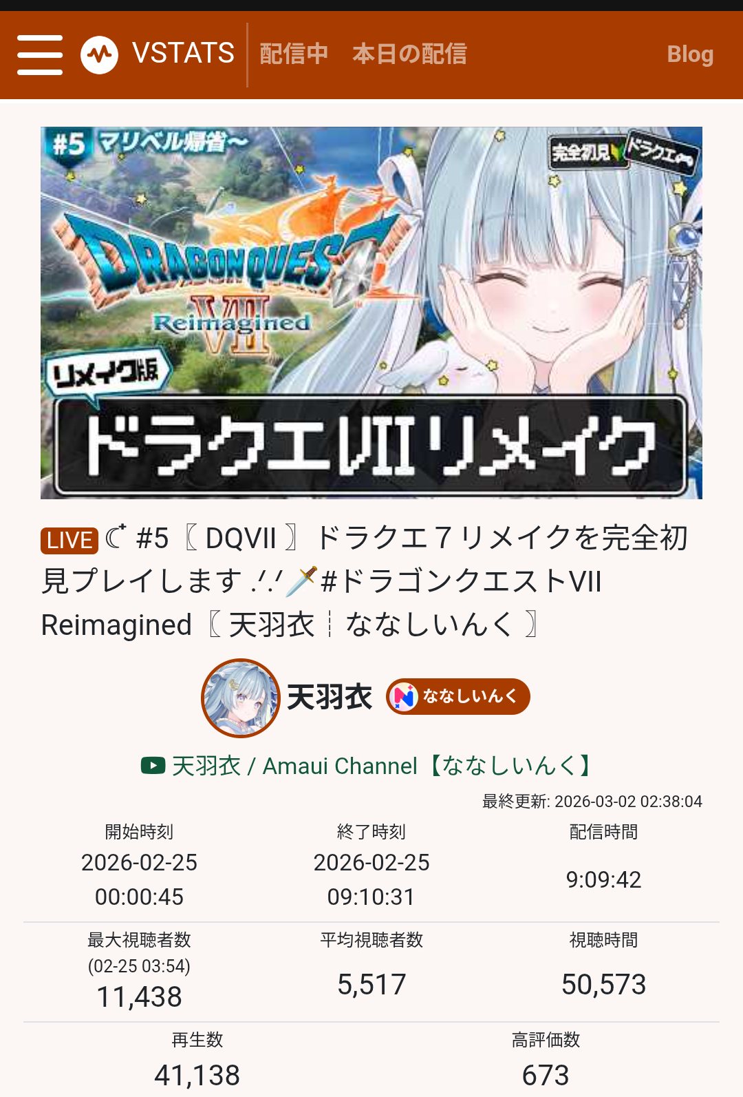 FINAL PLATINUM TALLY OF 2nd March 2026>37,279 : 赤彩みあ (すずみあ)>20,676 : 山黒音玄 ( あおぎり高校)>14,758 : かなえ先生 (Indie)>13,441 : 橘ひなの (VSPO)s>13,256 : 八雲べに (VSPO)>9,447 : 胡桃沢りりか (Indie)>9,279 : かなえ先生 (Indie)>6,642 : リモーネ先生 (Indie)>6,245 : 水上蒼太 (ゆにれいど!)>6,629 : 一ノ瀬うるは (VSPO)>5,753 : 億万株姫あばねちゃん (Indie)>5,665 : 家入ポポ ( ななしいんく)>5,562 : 藍沢エマ (VSPO)>5,354 : 英リサ (VSPO)>5,265 : ねるめろ (Indie)>5,199 : 空澄セナ (VSPO)