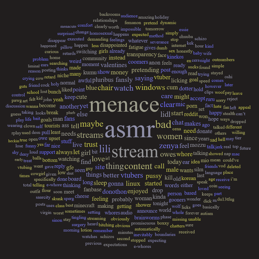 >>109908867>femanon preten dynamicWhy is the word cloud trying to slander me? :’(