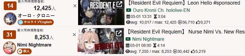 >85) Kira Killer (Zutomayo feat. Mori Calliope) - 40,553 views