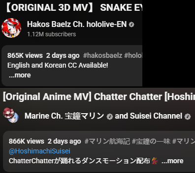 >14) Your Idol (Nerissa Ravencroft/Mori Calliope/Ouro Kronii/FUWAMOCO) - 107,439 views