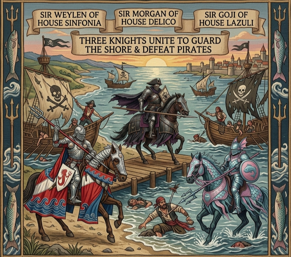 Three aquatic Knights vowed to keep the seas safe for the fisherfolk of the land.
