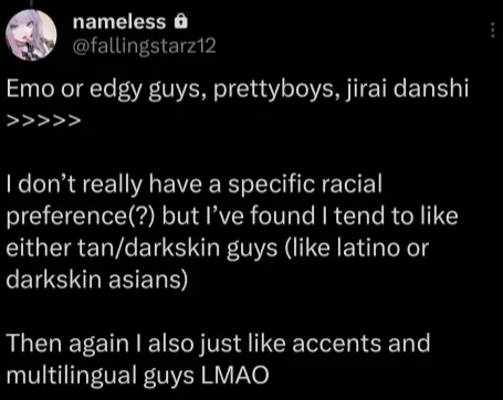 >>109940689It's weird that you feel the need to cope about something like this when she literally mentions asians and latinos.