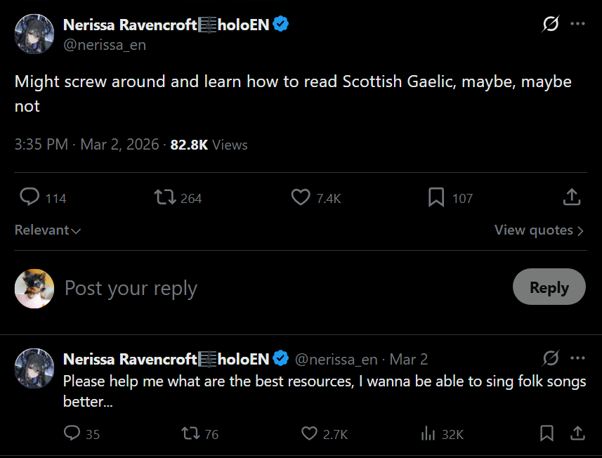 >>109938320I'm serious, I've never heard a singer, whether vtuber or otherwise, nearly on her level.