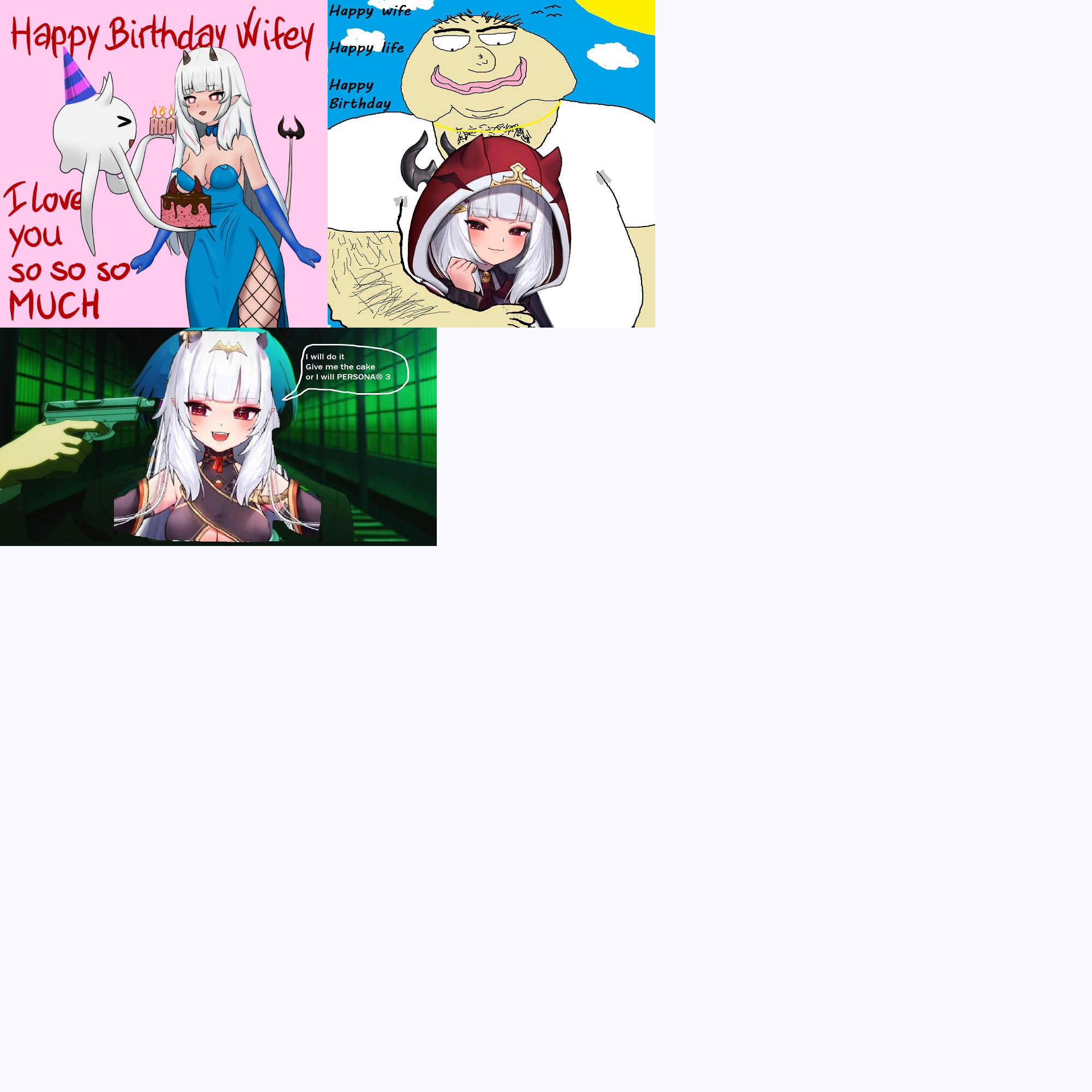 TWO DAYS LEFT!!! It's the Lucy Pyre birthday card! Show your appreciation for Lucy! Submissions must be SFW and have image dimensions that are a multiple of 200 (i.e. 200x200, 400x400, 200x400).Likes:>persona (3)>elden ring/sekiro/bloodborne/dark souls 3>resident evil 4 (leon)>silent hill 2>zelda>rune factory (4)>stardew valley>harvest moon>rhythm games (miku, love live)>visual novels (piofiore, nekopara, otome, yaoi)>anime (lucky star, dokuro-chan, code geass, nanoha, sailor moon, madoka, love live, fate, shugo chara, tokyo mew mew, fruits basket, naruto, death note, magi, inukami, rosario + vampire, chainsaw man, to love ru)>anime figures>my bad, i forgot you were fragile>clock strikes 12>6 7>twilight>heated rivalry>baseball>cats>strawberry sponge cake/cheesecake>boba tea>panda express (double kungpow chicken, no peppers, super greens, chow mein)>dark chocolate (60% ghirardelli, higher percents mixed with caramel/almond butter/mint)>pickles>ranch dressing>japanese language (n1 certified)>scented candles>tentacles>mcdonalds (nuggies, burger no cheese no lettuce no tomato)>fishing minigames>honkai star rail>pokemon (torchic, mimikyu, cynthia, gen3)>ffxiv>autism/cringeReference: https://mega.nz/folder/B7F0WKCR#RGRK4CLutHL7epkc2Rbj_A/folder/lu0RSSzS