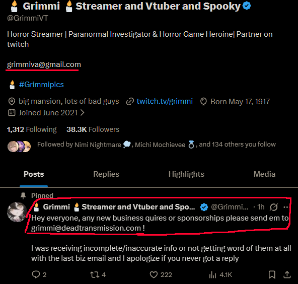 Grimmi confirmed she's using geegacorp