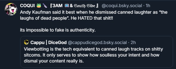 First Fang commenting on bots now Coqui. Do they just hate Oli or what? These bitches are supposed to be on vacation