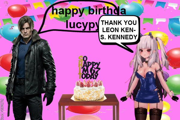 47 HOURS LEFT!!! It's the Lucy Pyre birthday card! Show your appreciation for Lucy! Submissions must be SFW and have image dimensions that are a multiple of 200 (i.e. 200x200, 400x400, 200x400).Likes:>persona (3)>elden ring/sekiro/bloodborne/dark souls 3>resident evil 4 (leon)>silent hill 2>zelda>rune factory (4)>stardew valley>harvest moon>rhythm games (miku, love live)>visual novels (piofiore, nekopara, otome, yaoi)>anime (lucky star, dokuro-chan, code geass, nanoha, sailor moon, madoka, love live, fate, shugo chara, tokyo mew mew, fruits basket, naruto, death note, magi, inukami, rosario + vampire, chainsaw man, to love ru)>anime figures>my bad, i forgot you were fragile>clock strikes 12>6 7>twilight>heated rivalry>baseball>cats>strawberry sponge cake/cheesecake>boba tea>panda express (double kungpow chicken, no peppers, super greens, chow mein)>dark chocolate (60% ghirardelli, higher percents mixed with caramel/almond butter/mint)>pickles>ranch dressing>japanese language (n1 certified)>scented candles>tentacles>mcdonalds (nuggies, burger no cheese no lettuce no tomato)>fishing minigames>honkai star rail>pokemon (torchic, mimikyu, cynthia, gen3)>ffxiv>autism/cringeReference: https://mega.nz/folder/B7F0WKCR#RGRK4CLutHL7epkc2Rbj_A/folder/lu0RSSzS