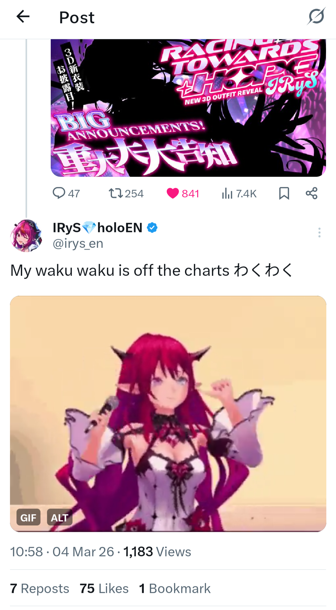 I wonder if her big announcement is actually a proper record label deal like Mori has.