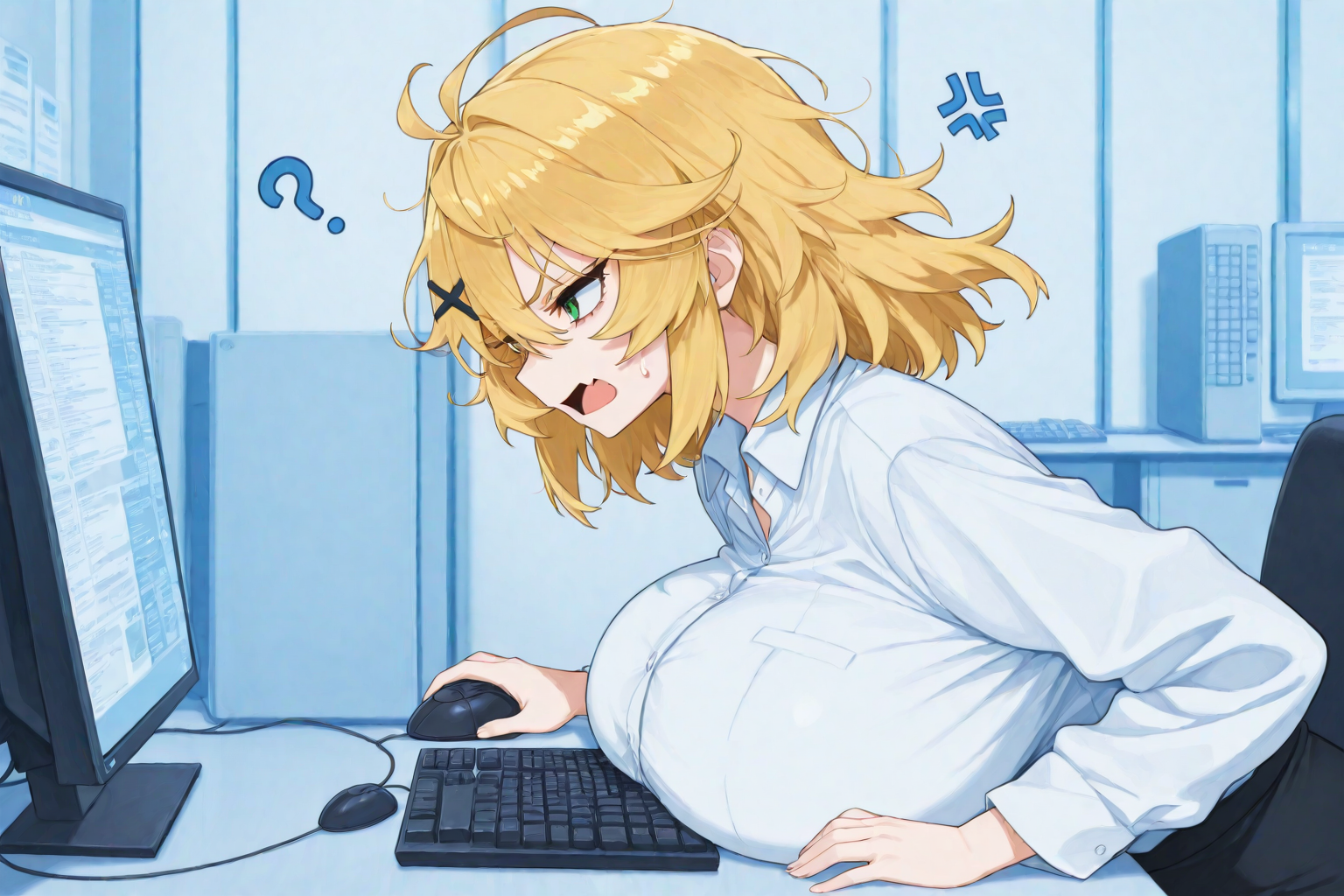 dokibird with gigantic tits (bigger than her head) accidentally smashing her keyboard with them and getting pissed off>>109962531