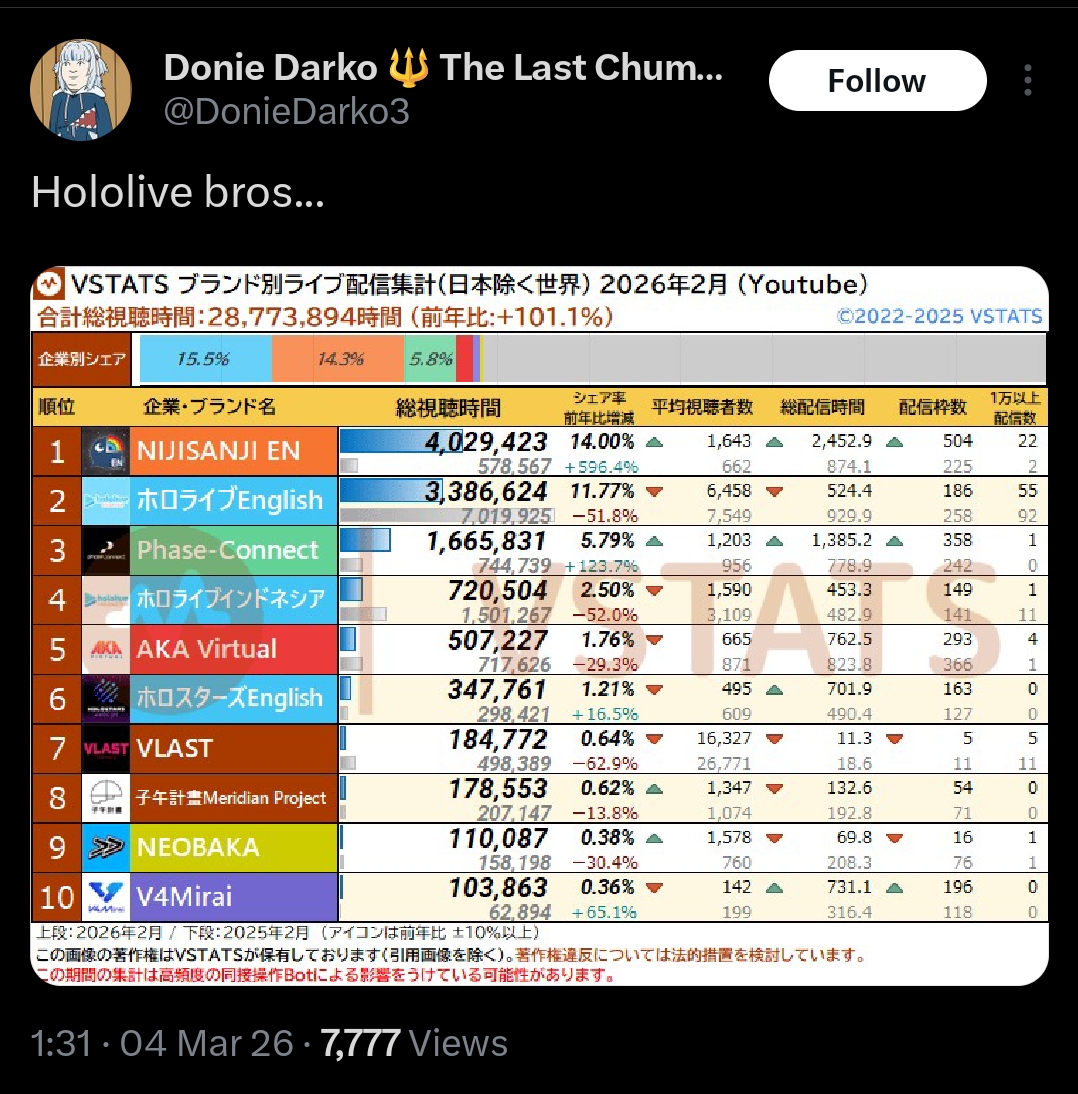 Damn if all your shitters have a "better studio" how come they're all getting mogged to shit by Hololive? kinda weird.