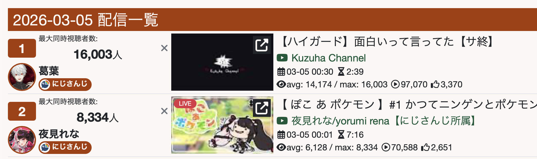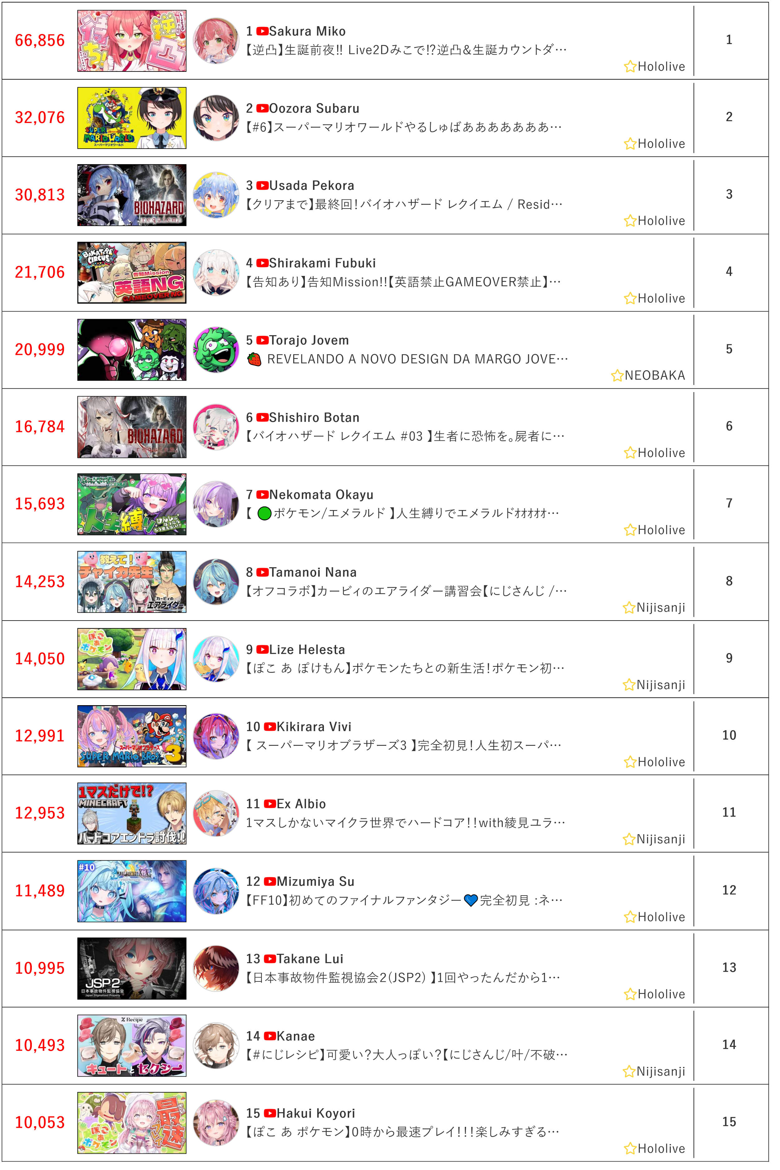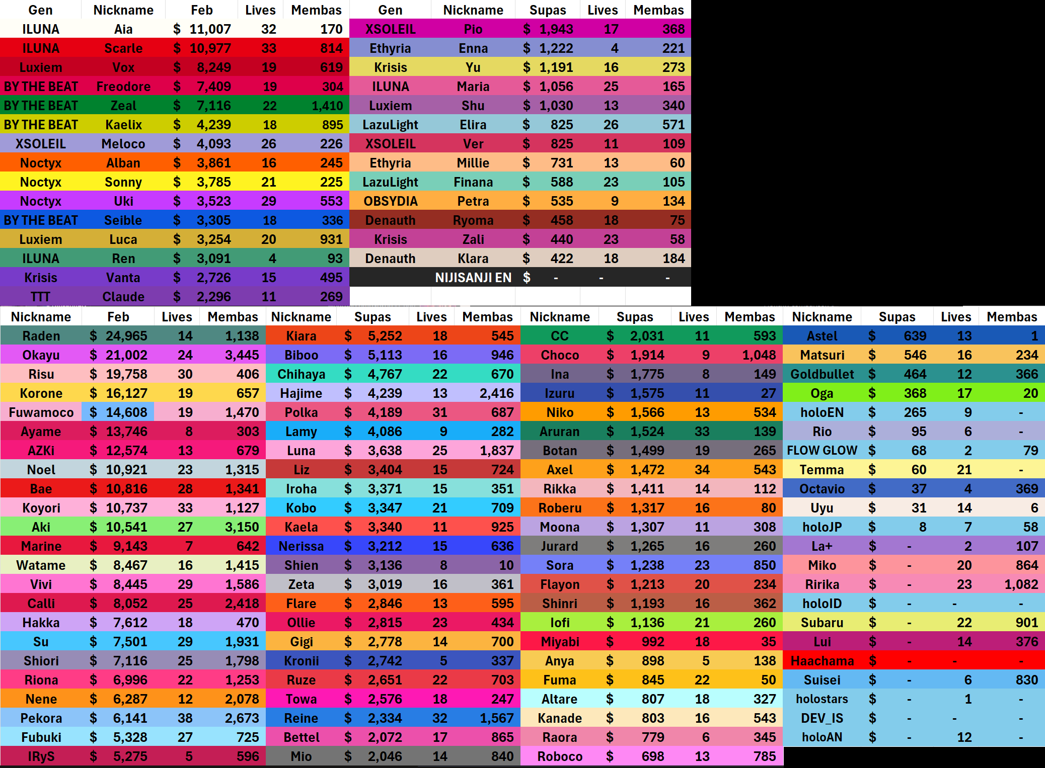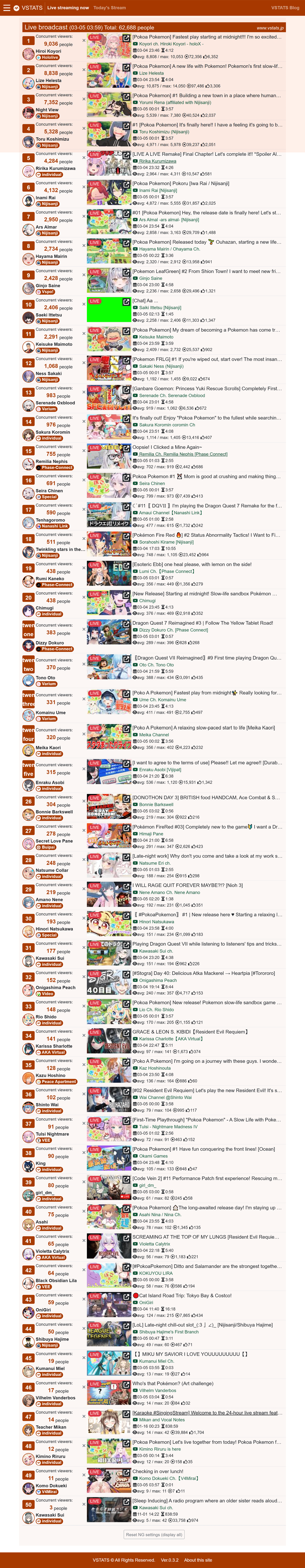 *GENERAL NUMBERFAG SITES*>https://playboard.co/en/>http://ikioi-ranking.com/>https://vrabi.net/>https://vtubertracker.info/en>https://holo-tracker.vercel.app/>https://live-ranking.userlocal.jp/vtuber-rankingHololive sites>https://www.hololyzer.net/youtube/index.html>https://trackholo.live/en/>https://holo-spotify-stats.jirikunes.eu/Twitch>https://sullygnome.com/>https://twitchtracker.com/>https://stats.roki.sh/>https://streamscharts.com/