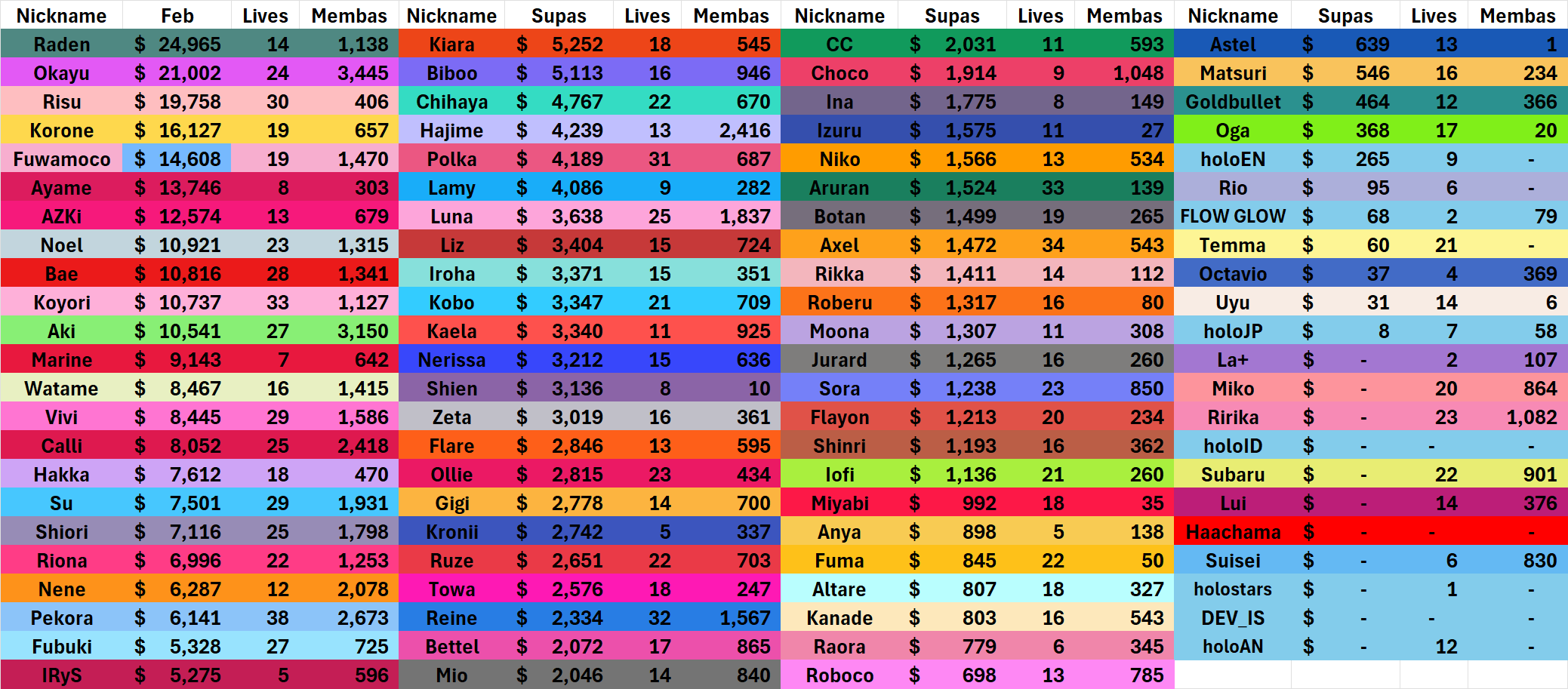 >>109972125>>109972144even taking into account her break she is overall still bottom 3 in the branch for lifetime superchat earnings