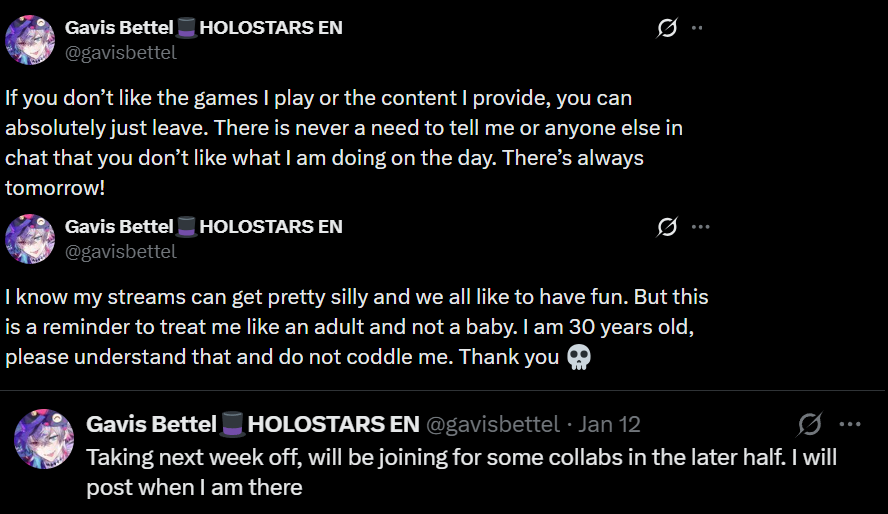 >>109972574Nothing, he's just mad that a holo he already dislikes for other reasons isn't pandering to his model of how a holo should beI mean fuck, we still have Ayame doing her thingAs long as someone doesn't wind up below her in hours AND output, I'd argue it's fine