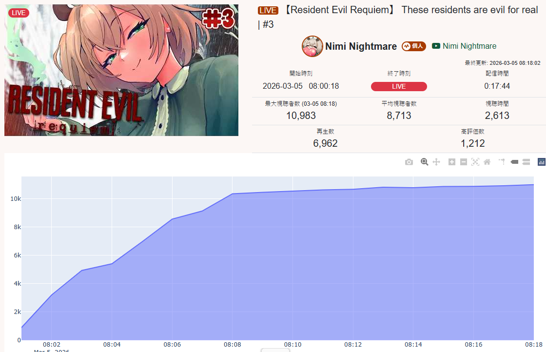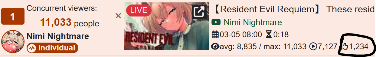>Nimi has 11k in less than 15 minutes liveBibot and Mori gotta wait hours just to get half of this!