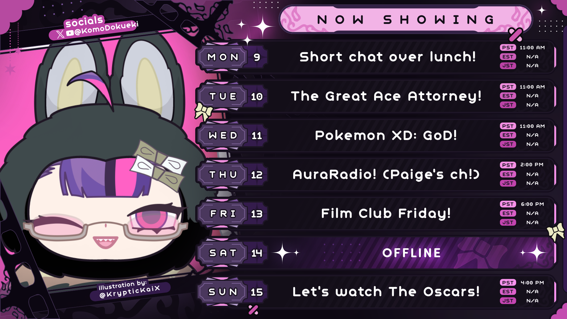 Komo schedule from the Discord