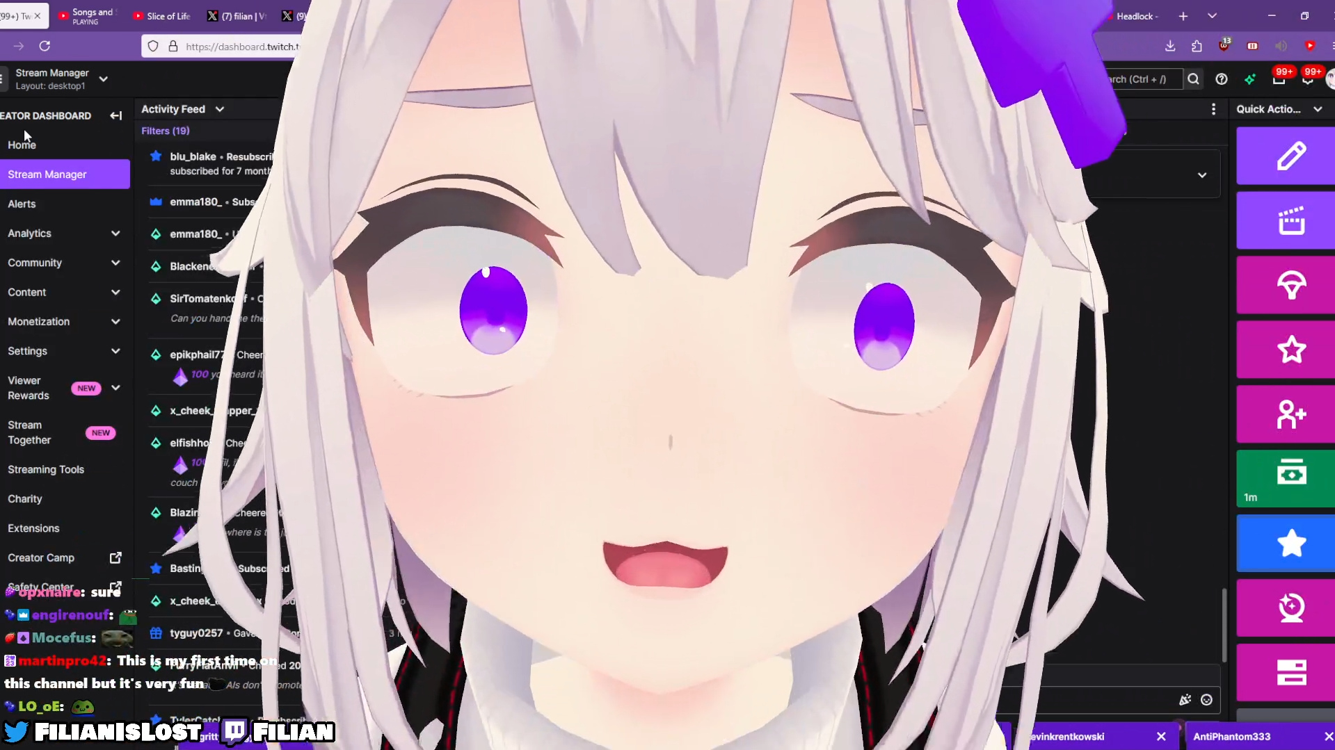 psycho killer Edition>The stories and information posted here are artistic works of fiction and falsehood.>Only a fool would take anything posted here as fact>Who is Filian?White haired and bushed kemonomutt girl(?). Hyperactive HDMI zoomer vtuber. Fruit snack goblin. She does her best to entertain her fans!>LinksTwitch: https://www.twitch.tv/filianYouTube: https://www.youtube.com/@filianIsLostTwitter: https://twitter.com/filianIsLost>Notable ClipsFilian breaks containmenthttps://www.twitch.tv/filian/clip/EmpathicCautiousFiddleheadsHeyGirl-T0o3Tu3mMhdDwPly/flip/ on da telly!!!https://streamable.com/vu7vmlFrog Ridah!https://www.twitch.tv/filian/clip/FurtiveDeadSoymilkHassaanChop-lRxGzX-R60FvHDt2Filian was shocked on how messy this viewers room washttps://www.youtube.com/watch?v=EyyAuM4jSvQThe BEST of Filian!https://www.youtube.com/watch?v=H8pCfUEhZso>Featured StreamsThe VTuber Awards 2024 hosted by Filian and ShyLilyhttps://www.youtube.com/watch?v=JFlMoznC144FIVE NIGHTS AT FILLYS [2024-10-26]https://www.youtube.com/watch?v=WOg0nCnJ6FQMEETING JAPANESE FILIAN [2025-01-06]https://www.youtube.com/watch?v=qko2nxe6qmsOUTFIT REVEAL New Kimono outfit with the new tracking! HD Filian! [2025-04-04]https://www.youtube.com/watch?v=qazfLW-AT2YOFF-COLLAB HORROR NIGHT WITH LAYNA [2025-06-13]https://www.youtube.com/watch?v=5_Fp-LUbBTQ>Fan music videosLove Tastehttps://www.youtube.com/watch?v=XAbCQYiJefwMy Vtuber Lifehttps://www.youtube.com/watch?v=Ablf1N0bB60Super Shyhttps://www.youtube.com/watch?v=LPy_G_w_C5A>Rentrys/ArchivesVod Archival Guidehttps://rentry.org/Vod_Archival_GuideStream Archiveshttps://rentry.org/Filipino_ArchiveDance Archivehttps://rentry.org/filiDanceArchiveSoundpost Archivehttps://www.snekbot.com/filly/fillysoundpostsThread baking instructionshttps://rentry.org/flip_baking_pasta_v2>Divegrasshttps://implyingrigged.info/wiki//flip/>Fansly Archivehttps://gofile.io/d/K0HHowhttps://catbox.moe/c/rin07whttps://catbox.moe/c/hxymz2>Usual scheduleYeah>Recent Stream :(>Friends>>>/vt//pcg/>>>/vt//big/>>>/vt//haha/>>>/vt//999/>>>/vt//swarm/>Previous Thread>>109917054