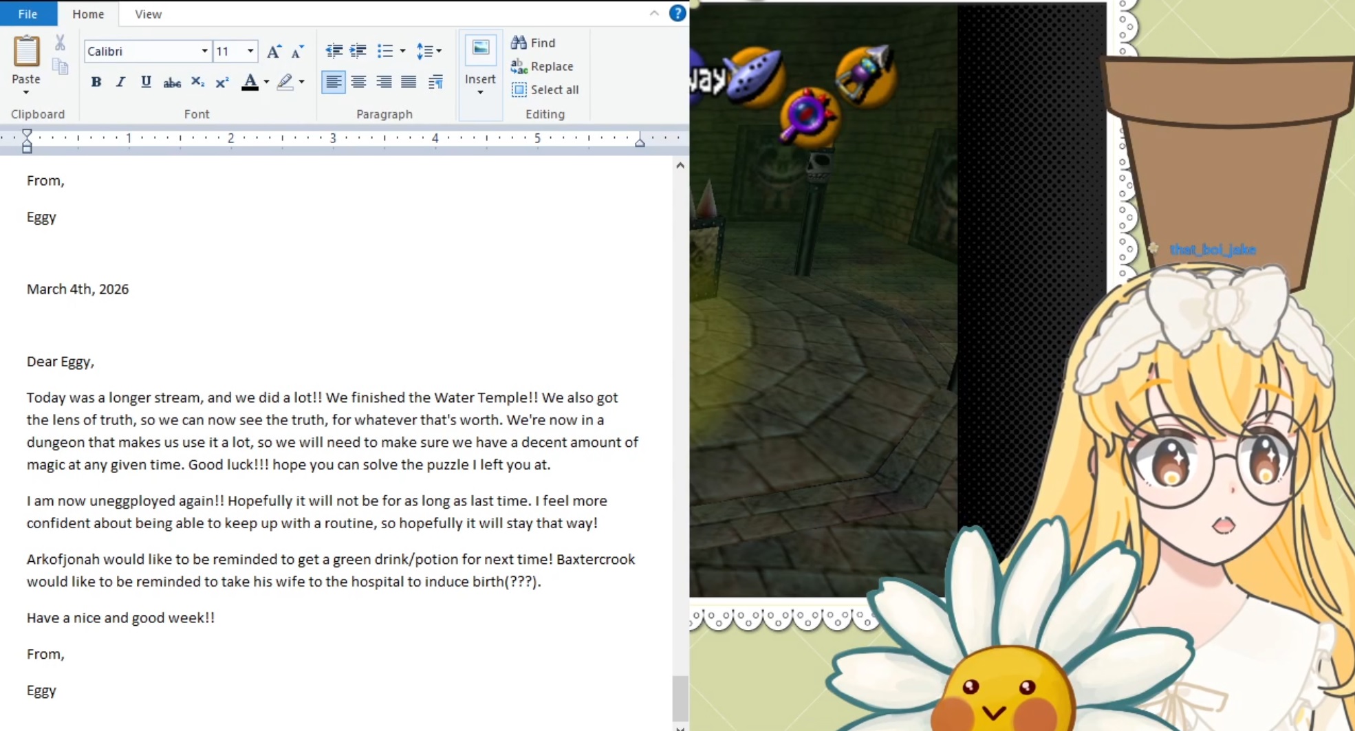 >>109979564Ongoing StreamsVictoria and Phoebe are off collabing and playing Sonic Adventure 2 Battle togetherhttps://www.youtube.com/watch?v=enBlcDssPasMitora is playing Super Bomberman 3https://www.youtube.com/watch?v=FLqBrGByFl0Noa Nekono is playing Pokemon FireRedhttps://www.youtube.com/watch?v=HhpjnYllRRQPlum Rose is playing The Legend of Zelda The Wind Wakerhttps://www.youtube.com/watch?v=ZMaX_g4uau0Kalmia Amanita is celebrting her 5 year anniversary and playing Nancy Drew: Danger on Deception Islandhttps://www.twitch.tv/kalmia_amanitaMiss Fushi is playing Wario Land 4 for Wario Wednesdayhttps://www.twitch.tv/missfushiTraveler Aria is playing Mega Man 3 for Mega Man Marchhttps://www.twitch.tv/travelerariaMoriko Kyoho is playing megaman romhack fan levels in the make a good mega man level contest #2 https://www.twitch.tv/batatvideogamesAki Gougou is playing Banjo-Kazooiehttps://www.twitch.tv/akkigouAlicja Da Lontano is playing Castlevania Symphony of the Nighthttps://www.twitch.tv/alicjadalontanoPrimrose is playing .hack//Infectionhttps://www.twitch.tv/late_primroseBry Bryant is playing Kirby 64: The Crystal Shardshttps://www.twitch.tv/bryantbryUme Aino is playing Yakuzahttps://www.twitch.tv/umeainoMarie de l'Oeuf is playing The Legend of Zelda Ocarina of Timehttps://www.twitch.tv/niceeggyProfessor Bloom is playing Doom 2 WAD Nova IVhttps://www.twitch.tv/profbloomvtuberZuzu Mizuchi is playing Earthboundhttps://www.twitch.tv/zuzumizuchiAmanda and Gummy are playing Super Mario 64https://www.twitch.tv/cinnamontwitchesMikan is playing Super Mario 64https://www.twitch.tv/mikantheminkHank Hill is playing Tony Hawk's underground 2https://www.twitch.tv/thegoodjared