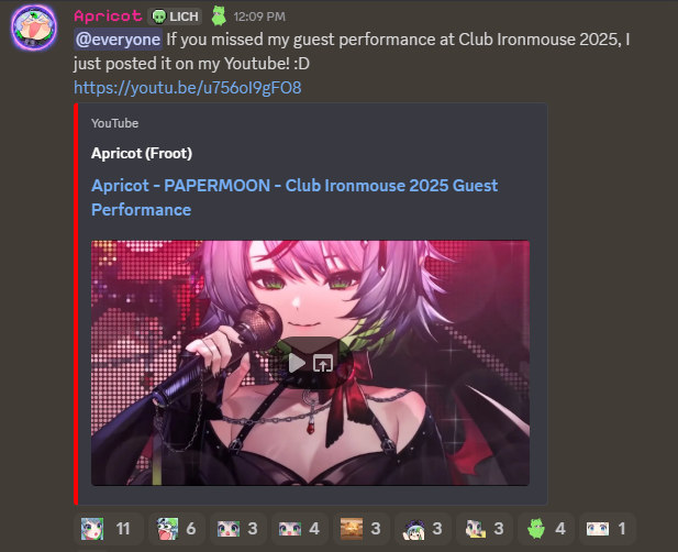 Froot uploaded her Club Ironmouse performance to youtubehttps://www.youtube.com/watch?v=u756oI9gFO8