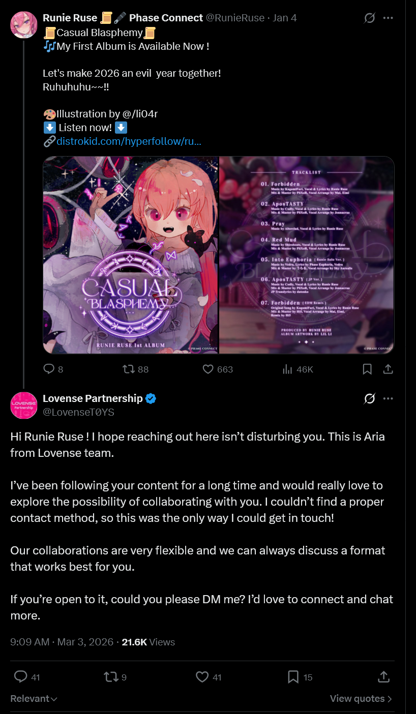 The operator and actor behind Kaneko Lumi is in a relationship
