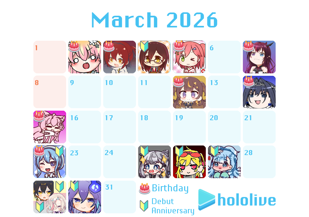 https://www.youtube.com/watch?v=kFV6OpB8i2o Okayu Mario Tennis>post fes retrospectiveshttps://www.youtube.com/watch?v=tYKiB5A2owQ Sorahttps://www.youtube.com/watch?v=3GUq5ukIsIQ Suiseihttps://www.youtube.com/watch?v=n4yLsTkrNg0 Ayamehttps://www.youtube.com/watch?v=OeIty84t3_k Subaruhttps://www.youtube.com/watch?v=Npp4I-rhSR4 Chihaya