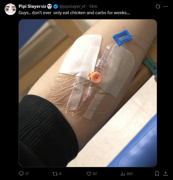>>110002766Still wouldn't cause the problem she has, and you could eat nothing but chicken and rice forever and be mostly fine as long as you add some fat in like olive oil or some nuts >>110002922See above, also eat some fat(healthy) cause your brain and muscles need it