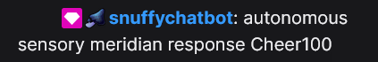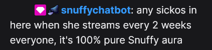 >>110025806 (me)Snuffy too. I think she has the best vibes of any streamer I've seen. Just good to be around, hang out and chat shit