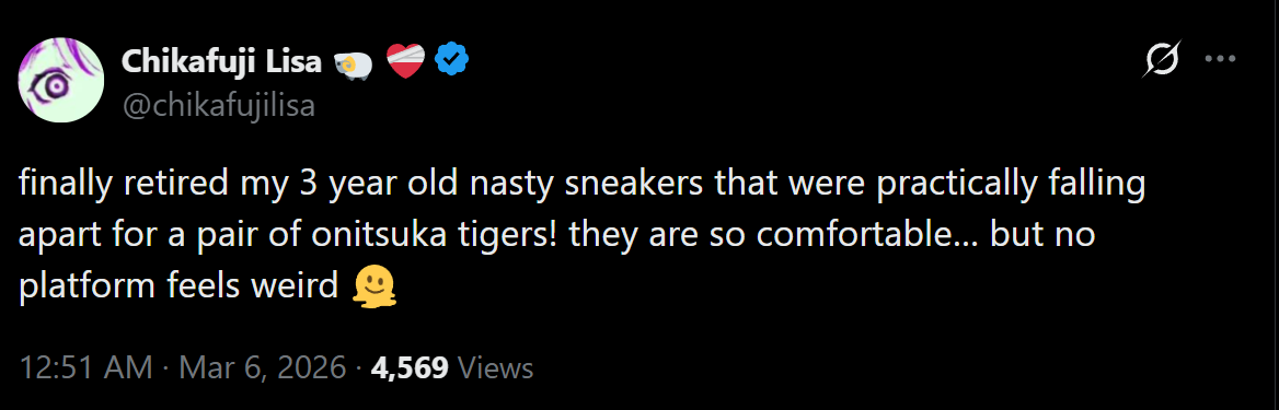 >>110026192she's asian so no real lisa related smell on those sneakers.