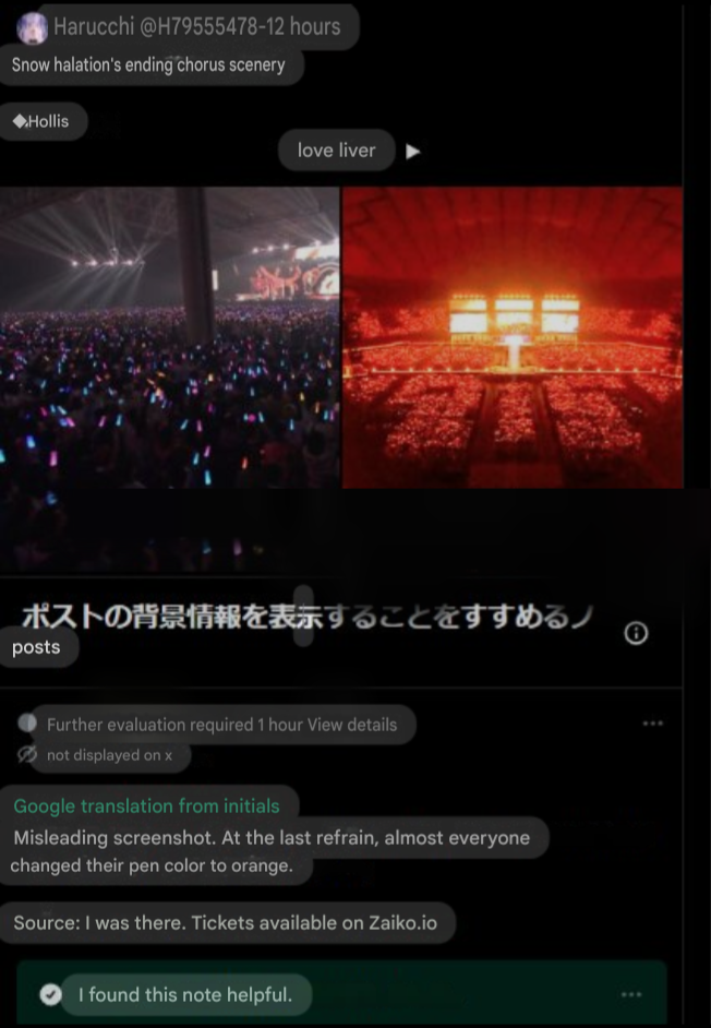 The Stage 1 crowd didn't know about switching their lights to orange for the finale of Lamy and Koyoyo's Snow Halation and embarrassed the entirety of the vTuber idol fandom.