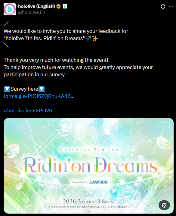 >LAST STREAM: 【チラ見せ】hololive 7th fes. Ridin' on Dreams STAGE2【#hololivefesEXPO26_DAY2】