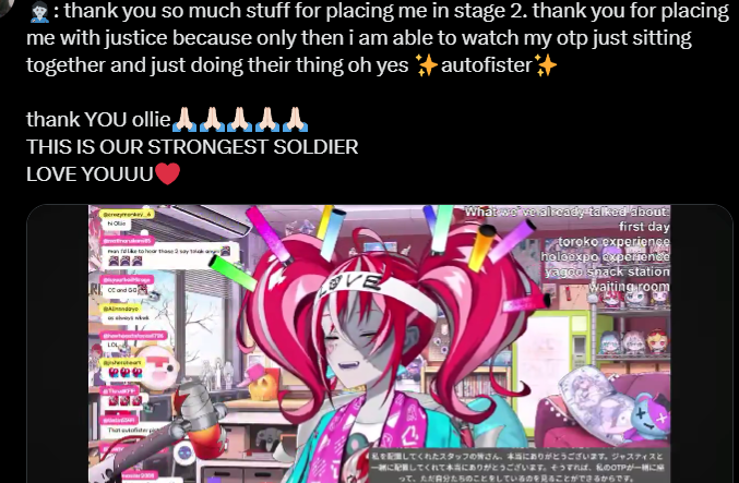 No, she only saw that after she got Pekora clips through her recommendations, which led to her watching a bunch of Holo clips. Matsuri's one was just the most memorable to her.