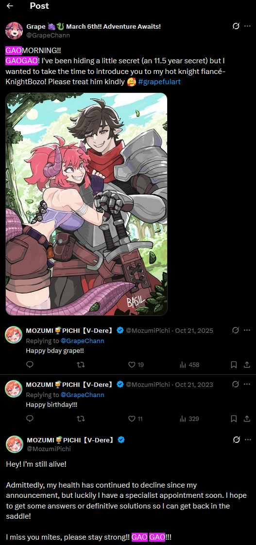 >>110045137>>110044698>>110045287>march 6thSo she made her boyfriend a big announcement?>they're cuckedShe was already dating him, the real questionis what is up with these 30yo women all wanting to be anime around 2020ish~ while also having boyfriends, then just hiding it "because no one would watch or donate otherwise!".