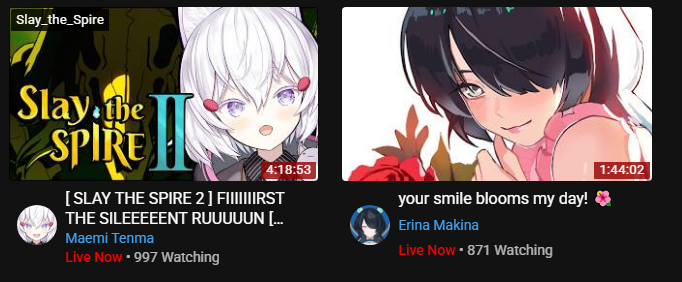 >>110105006>>110105020She streams semi-daily she's been really enjoying Dragon Quest 11s