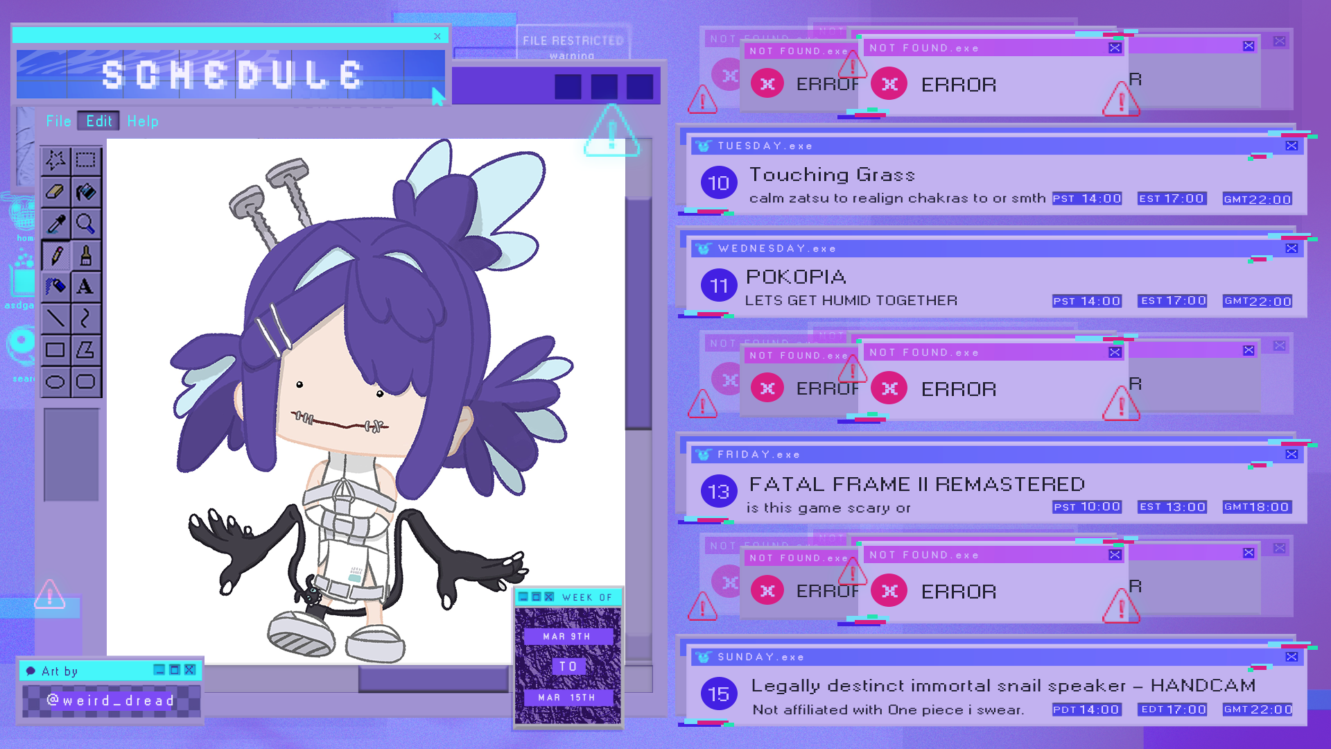 Doc's schedule from the Discord