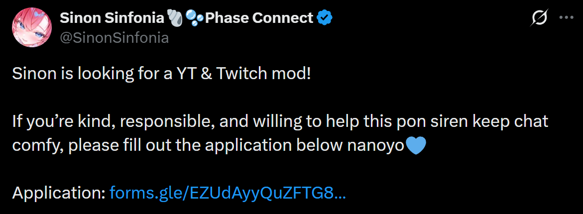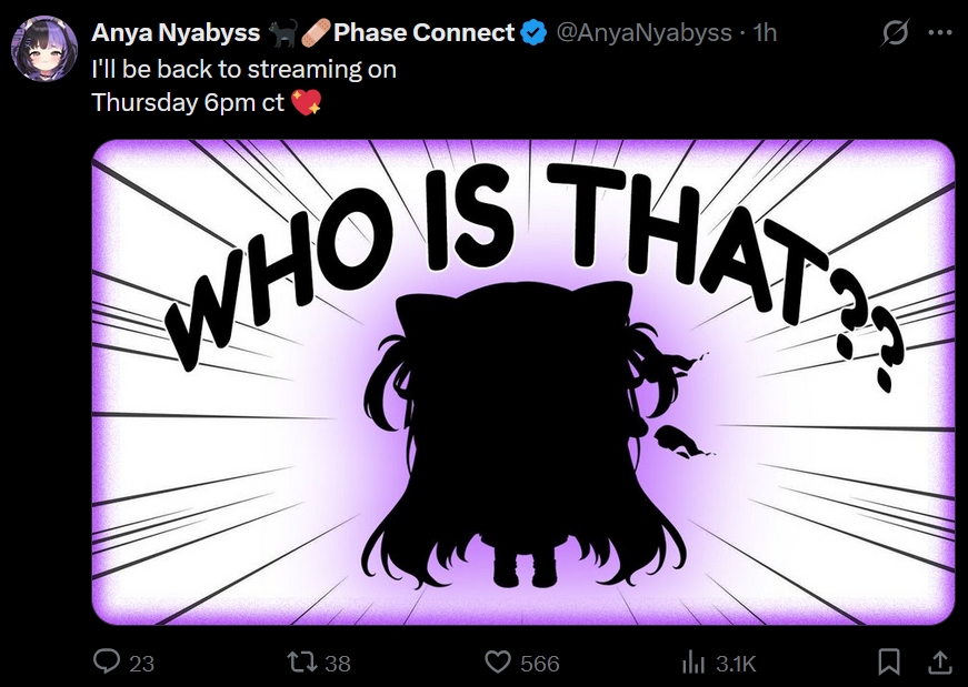 ▼ Phase Connect LinksOfficial Website: https://phase-connect.comOfficial Schedule: https://schedule.phase-connect.comOfficial Twitter: https://x.com/PhaseConnect | https://x.com/PhaseConnectJPOfficial Character References: https://rentry.org/pcgreferencesOfficial Twitch Archive Channels: https://rentry.org/pcgtwitcharchiveUnofficial Phase Connect Archives: https://rentry.org/pcgunofficialarchive––––––––––––––––––––––––––––––––––◆【Lia】https://x.com/rinkouashelia | https://youtube.com/RinkouAshelia | https://twitch.tv/asheliarinkou◆【Utatane Nasa】転寝ナサ (JP) https://x.com/UtataneNasa | https://youtube.com/UtataneNasa | https://twitch.tv/utatanenasa◆【Hakushika Iori】白鹿いおり (JP + EN) https://x.com/hakushikaiori | https://youtube.com/HakushikaIori | https://twitch.tv/iorihakushika◆【Fujikura Uruka】https://x.com/fujikurauruka | https://youtube.com/FujikuraUruka | https://twitch.tv/fujikurauruka◆【Shisui Michiru】紫翠みちる (JP) https://x.com/shisuimichiru | https://youtube.com/ShisuiMichiru | https://twitch.tv/michiru_shisui◆【Tenma Maemi】https://x.com/tenmamaemi | https://youtube.com/TenmaMaemi | https://twitch.tv/tenma◆【Pipkin Pippa】https://x.com/pipkinpippa | https://youtube.com/PipkinPippa | https://twitch.tv/pippa––––––––––––––––––––––––––––––––––◆【Kaneko Lumi】https://x.com/kaneko_lumi | https://youtube.com/KanekoLumi | https://twitch.tv/kanekolumi◆【Fuura Yuri】[Terminated] https://x.com/AmarisYuri | Archive: https://youtube.com/@TheNationalFuuraYuriArchive◆【Dizzy Dokuro】https://x.com/dizzydokuro | https://youtube.com/@dizzydokuro | https://twitch.tv/dizzydokuro◆【Jelly Hoshiumi】https://x.com/jellyhoshiumi | https://youtube.com/@jellyhoshiumi | https://twitch.tv/jellyhoshiumi◆【Ember Amane】https://x.com/emberamane | https://youtube.com/@EmberAmane | https://twitch.tv/emberamane◆【Clio Aite】https://x.com/ClioAite | https://youtube.com/@ClioAite | https://twitch.tv/clioaite◆【MariMari_en】https://x.com/MARIMARI_EN | https://youtube.com/@MARIMARI_EN | https://twitch.tv/marimari_en◆【Eepy Sleepy】https://x.com/EepySleepyCh | https://youtube.com/@EepySleepyCh | https://twitch.tv/EepySleepy––––––––––––––––––––––––––––––––––◆【Remilia Nephys】https://x.com/Remilia_Nephys | https://youtube.com/RemiliaNephys | https://twitch.tv/remilianephys◆【Chisaka Airi】https://x.com/ChisakaAiri | https://youtube.com/ChisakaAiri | https://twitch.tv/chisakaairi◆【Amanogawa Shiina】https://x.com/AmanogawaShiina | https://youtube.com/AmanogawaShiina | https://twitch.tv/amanogawashiina◆【Himemiya Rie】https://x.com/HimemiyaRie | https://youtube.com/HimemiyaRie | https://twitch.tv/himemiyarie◆【Erina Makina】https://x.com/ErinaMakina | https://youtube.com/ErinaMakina | https://twitch.tv/erinamakina◆【Komachi Panko】https://x.com/komachipanko | https://youtube.com/KomachiPanko | https://twitch.tv/komachipanko––––––––––––––––––––––––––––––––––◆【Runie Ruse】https://x.com/RunieRuse | https://youtube.com/@RunieRuse | https://twitch.tv/RunieRuse◆【Eimi Isami】https://x.com/eimiisami | https://youtube.com/@eimiisami | https://twitch.tv/eimiisami◆【Muu Muyu】https://x.com/Muu_Muyu | https://youtube.com/@MuuMuyu | https://twitch.tv/MuuMuyu◆【Hikanari Hina】https://x.com/HikanariHina | https://youtube.com/@HikanariHina | https://twitch.tv/HikanariHina◆【Saya Sairroxs】[Phase Citizen] https://x.com/sayasairroxs | https://youtube.com/@sayasairroxs | https://twitch.tv/sayasairroxs––––––––––––––––––––––––––––––––––◆【Kannagi Loki】巫ロキ (JP) https://x.com/kannagiloki | https://youtube.com/@kannagiloki ◆【Kokoromo Memory】[Phase Citizen] https://x.com/kokoromomemory | https://youtube.com/@kokoromomemory_ | https://twitch.tv/kokoromomemory◆【Gram Pico】倉夢ぴこ (JP) https://x.com/grampico_ | https://youtube.com/@grampico | https://twitch.tv/grampico◆【Ayase Yuu】絢世ユウ (JP) https://x.com/ayaseyuuu | https://youtube.com/@ayaseyuu | https://twitch.tv/ayaseyuu_◆【Kaminari Clara】[Graduated] https://x.com/kaminariclara_ | https://youtube.com/@kaminariclara | https://twitch.tv/kaminariclara––––––––––––––––––––––––––––––––––◆【Malice Evermore】https://x.com/MaliceEvermore | https://youtube.com/@maliceevermore | https://twitch.tv/maliceevermore◆【Nitya Nil】https://x.com/Nitya_Nil | https://youtube.com/@Nitya_Nil | https://twitch.tv/nitya_nil◆【Wilhelmina Frost】https://x.com/wilhelminafr0st | https://youtube.com/@wilhelminafrost | https://twitch.tv/wilhelminafrost◆【Bibi Biscuit】https://x.com/BibiBiscuitCh | https://youtube.com/@bibibiscuitch | https://twitch.tv/bibibiscuitch◆【Anya Nyabyss】https://x.com/AnyaNyabyss | https://youtube.com/@AnyaNyabyss | https://twitch.tv/anyanyabyss◆【Sinon Sinfonia】https://x.com/SinonSinfonia | https://youtube.com/@SinonSinfonia | https://twitch.tv/sinonsinfoniaPrevious Thread: >>110105682