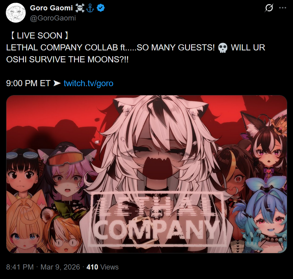 >>110115411you forgot to include dozens of other vtubersthe answer is, nobody cares