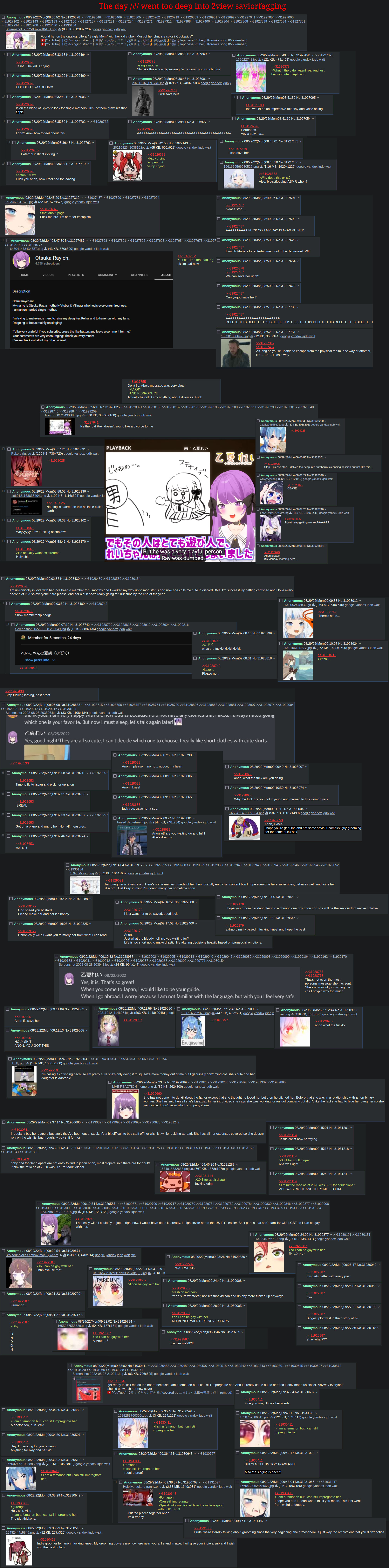 >>110114224This, of all the people to bitch about Otsuka is the most boring, safe and vanilla vtuber ever, only an actual real pedo would look at her and think "oh yeah she's whoring her kid", it's absolute nonsense tourist behavior.