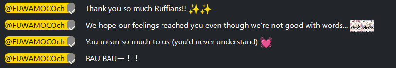 #FWMC2ndfesThank you so much #FUWAMOCO for the super duper fun chatting stream I loved hearing your stories and all the fun you had!! For the holodreams stage a ruffian send me this! The camera captured me showing of my ita bag!We ruffians forever love FWMC and hololive