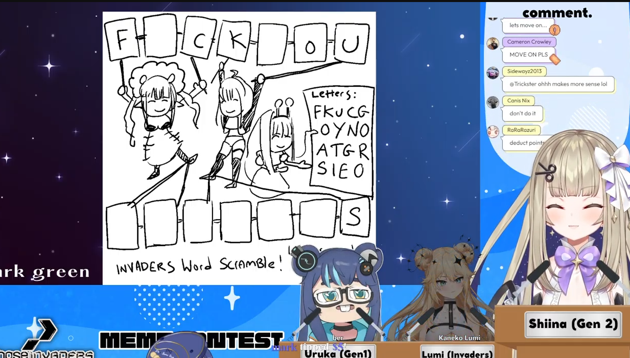 >>110118004Yeah! A collab stream last month with doob, henya, and green mint deer girl
