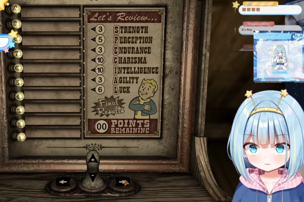 >>110120727She's new, the fact chat let her put 10 in Charisma is the real sin. Maybe it was too funny.