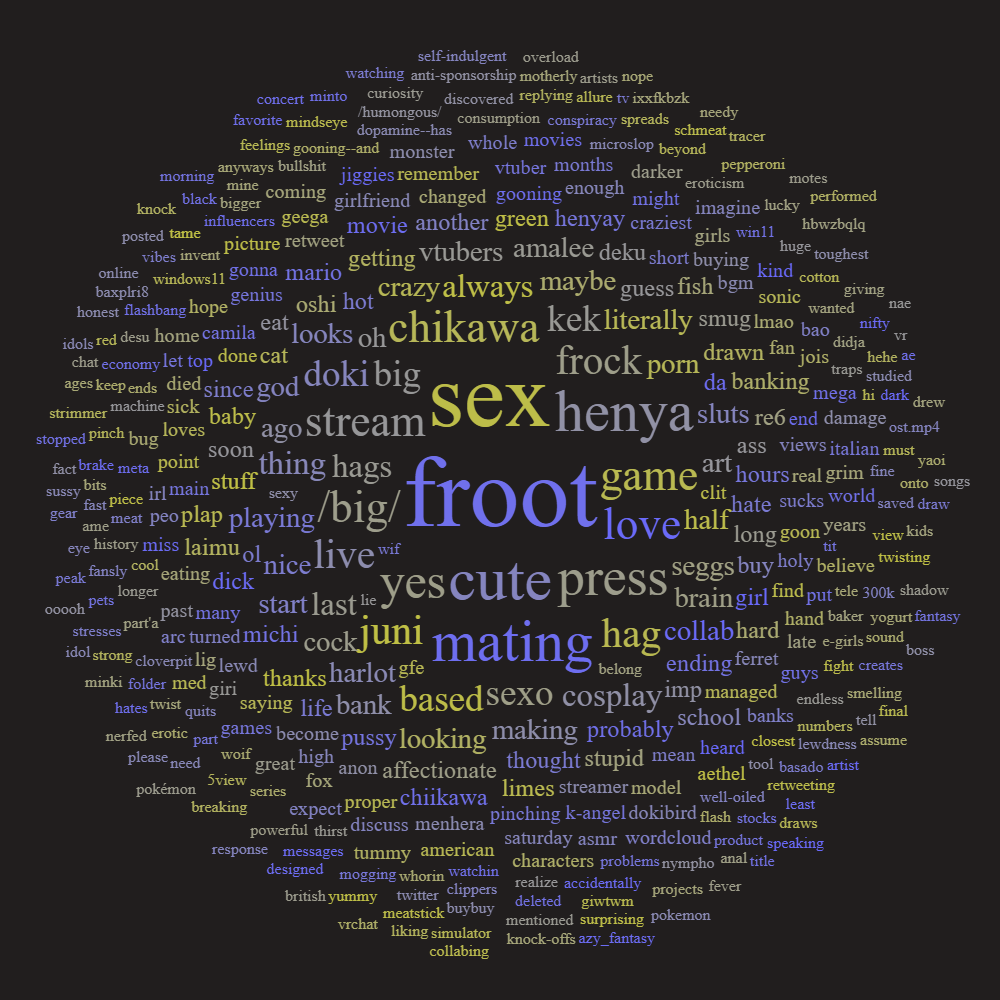 >>110134487>sex henya>peo plapThis word cloud is horny for Japanese biggas.