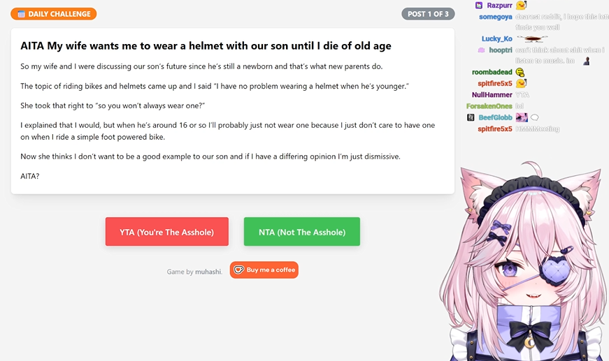 Pippa should do an AITA-guesser, just like Nyanners is doing right now. Just saying. Pippa, get working on it.