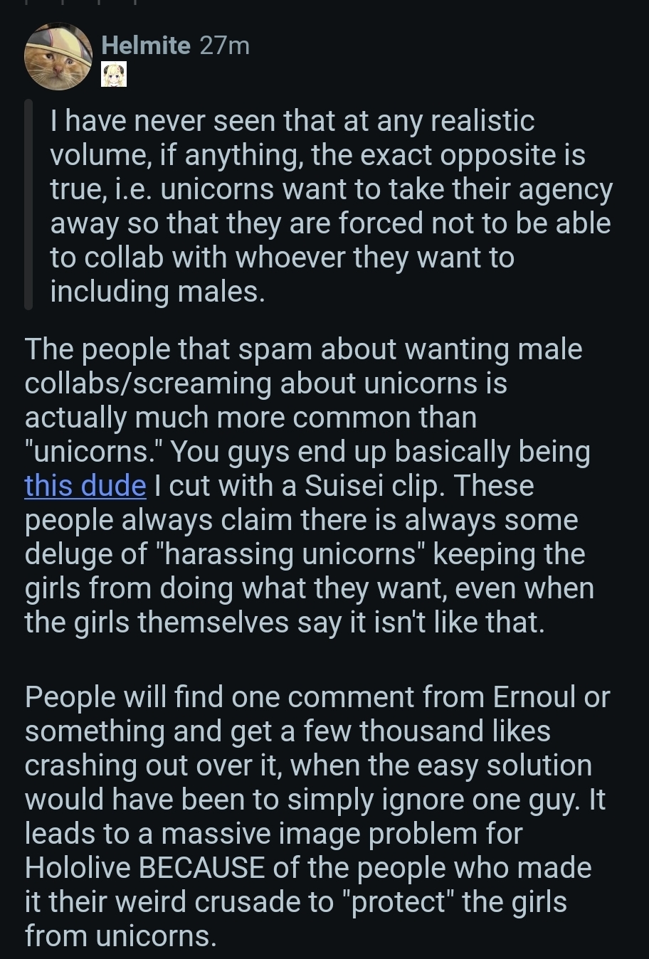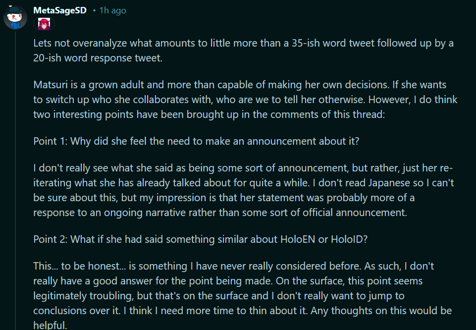 > even though this is maybe one of the one of the darker parts of holo history maybe it's been kind of rough, but there are also so many wonderful things to look forward to there's also a lot of sad as well, which is why we got to stick together and work hard with each other through it.