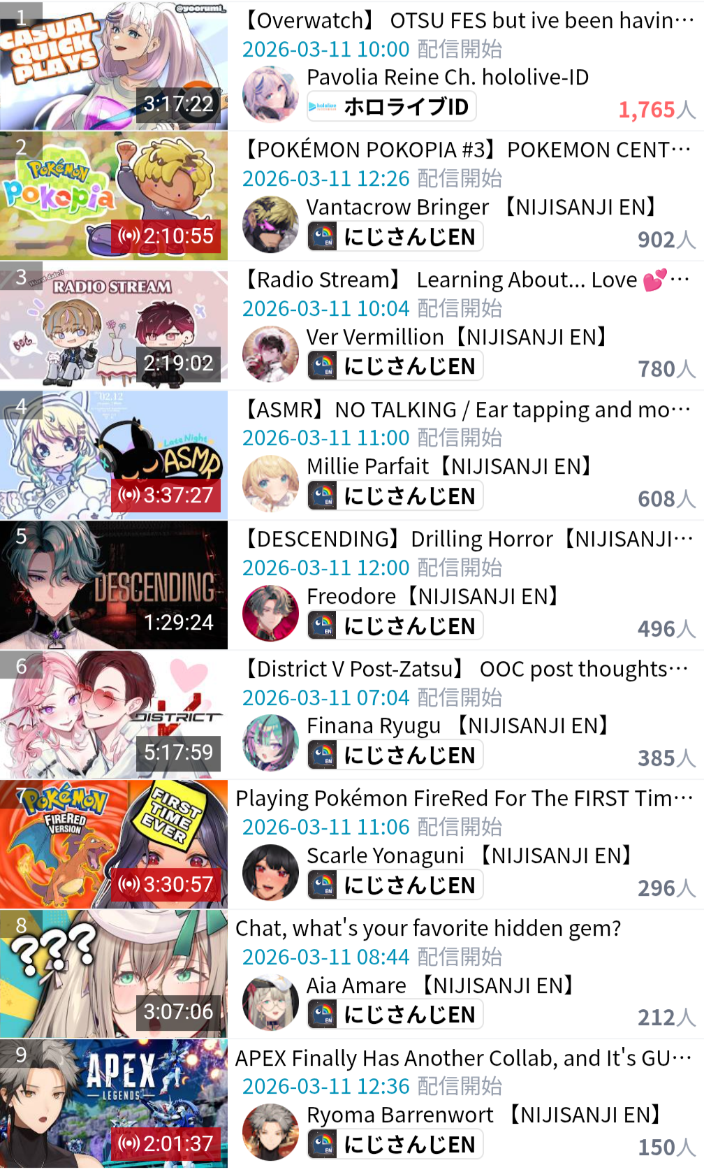 >Niji views down the drain across the entire board none of them can hit 5 view