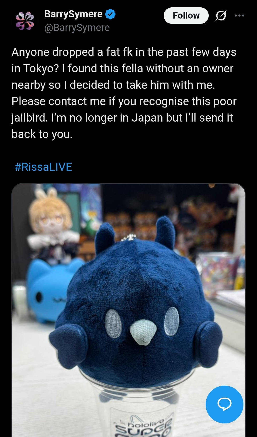 >>110157088(me)Also the fact that everything (especially the plushie) hasn't even been taken out from the packaging is a good indicator they aren't/weren't a fan