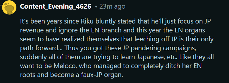 >>110146975Is he wrong? Even random people who don't follow vtubers on /vg/ can see it.