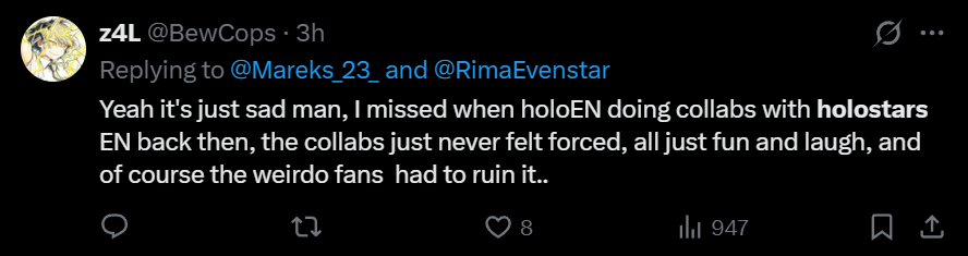 Imagine being a holostar right now. No merch, no more concerts, Stuck selling waffles at expo, Put in a tiny corner at expo, no count down live. Now one of your last collab parters said fuck you